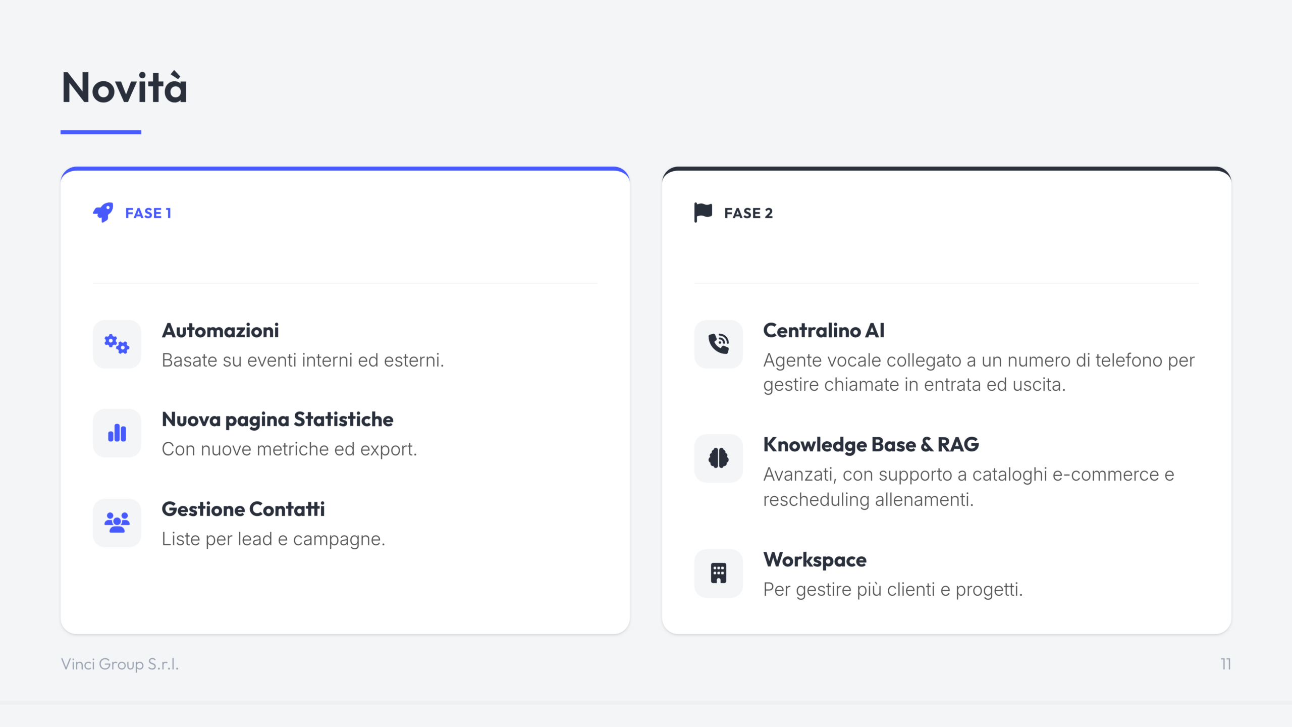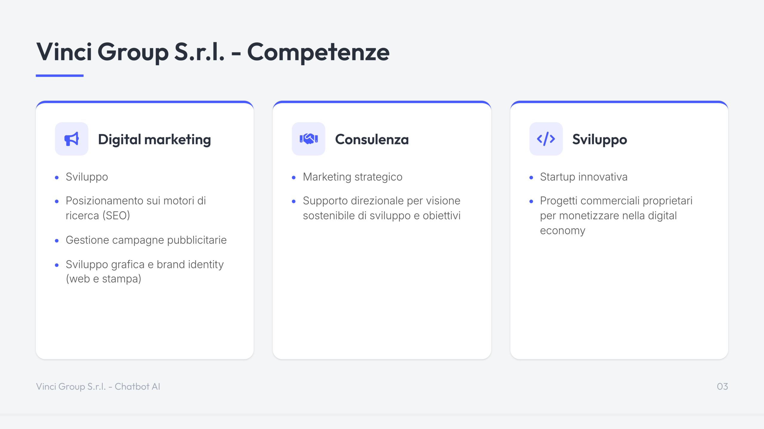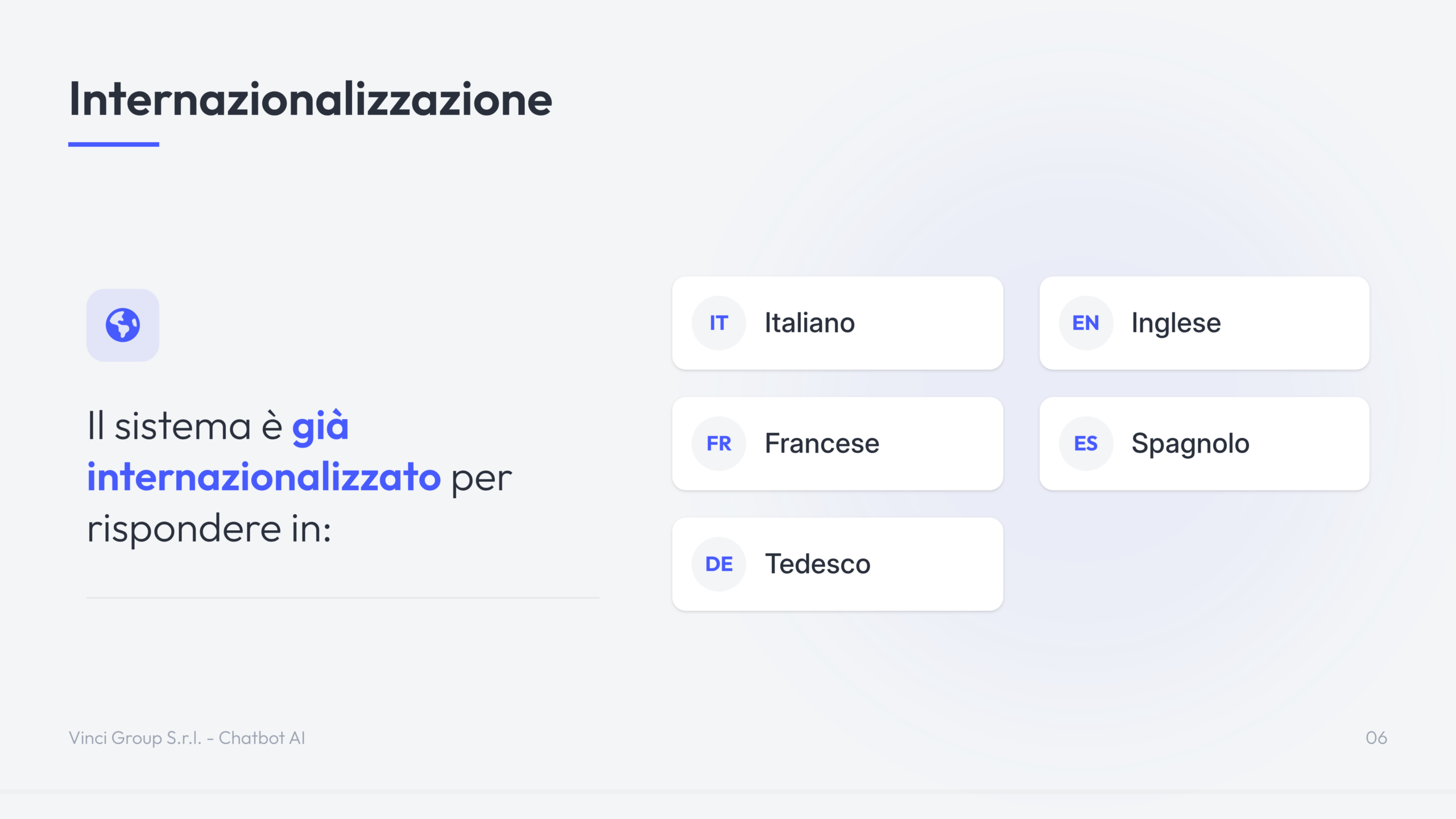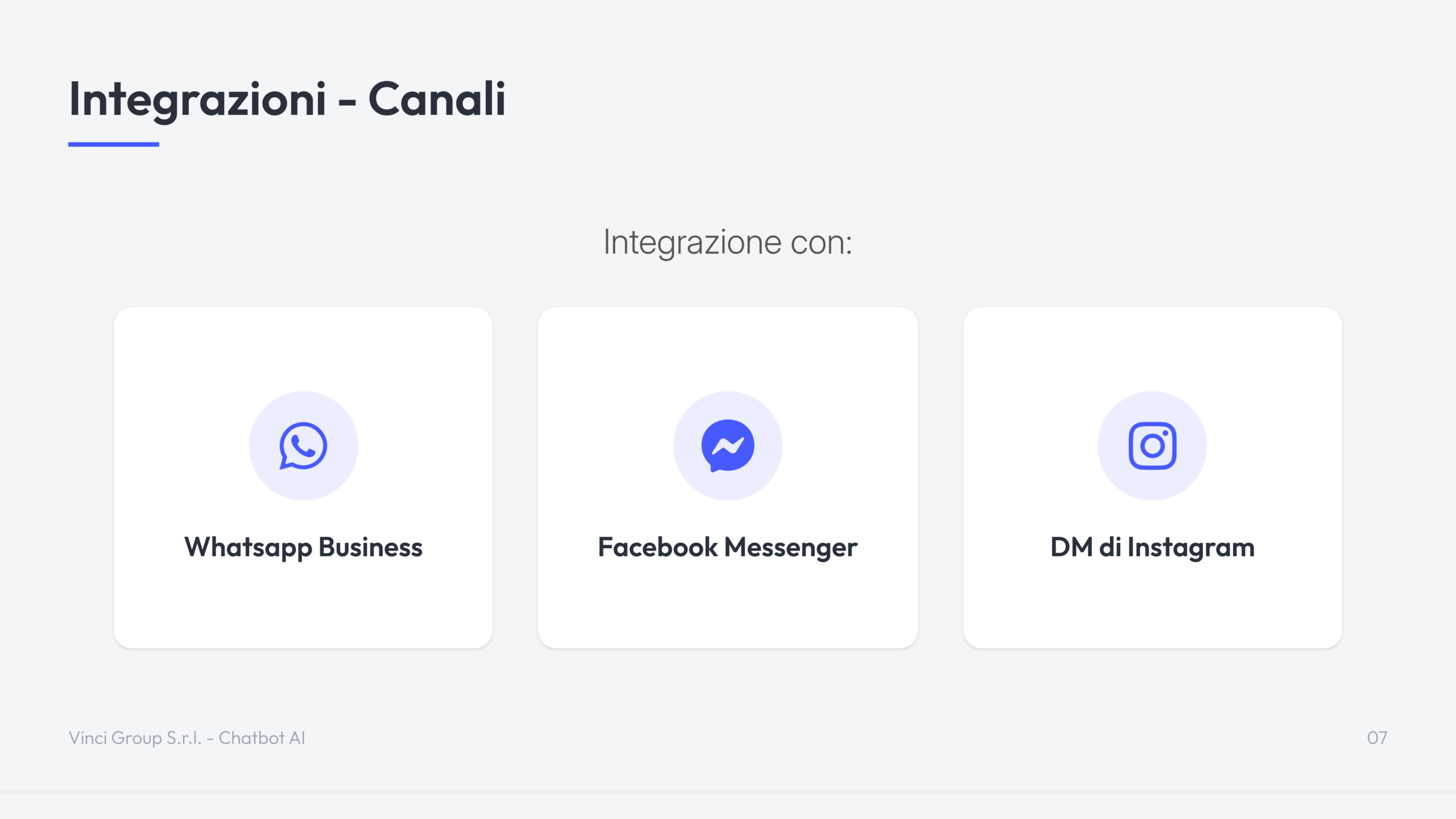 Il Chatbot AI di Vinci Group è una soluzione di intelligenza artificiale conversazionale progettata per automatizzare il supporto clienti e la gestione delle richieste su siti web ed e-commerce.